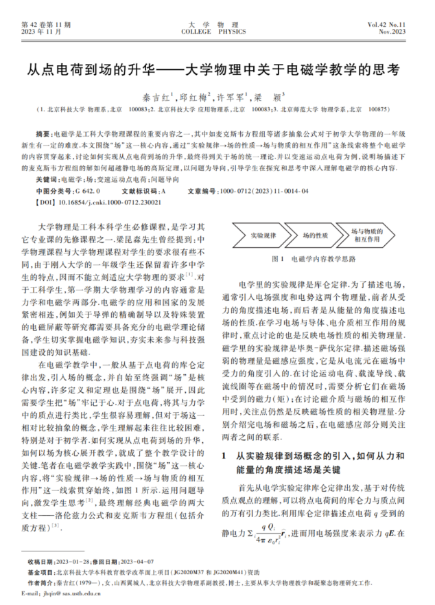 [35] 秦吉红、邱红梅、许军军、梁颖,从点电荷到场的升华——大学物理中关于电磁学教学的思考,大学物理,2023,(11):14-19.