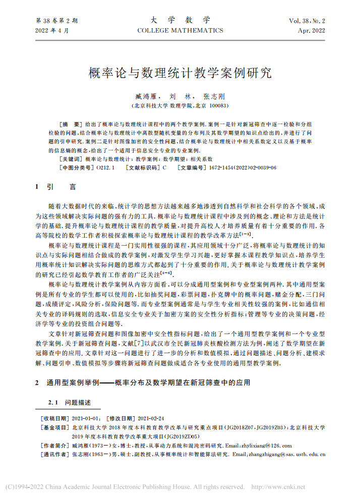 [13] 臧鸿雁,刘林,张志刚,概率论与数理统计教学案例研究,《大学数学》,2022,38(2):39-44.
