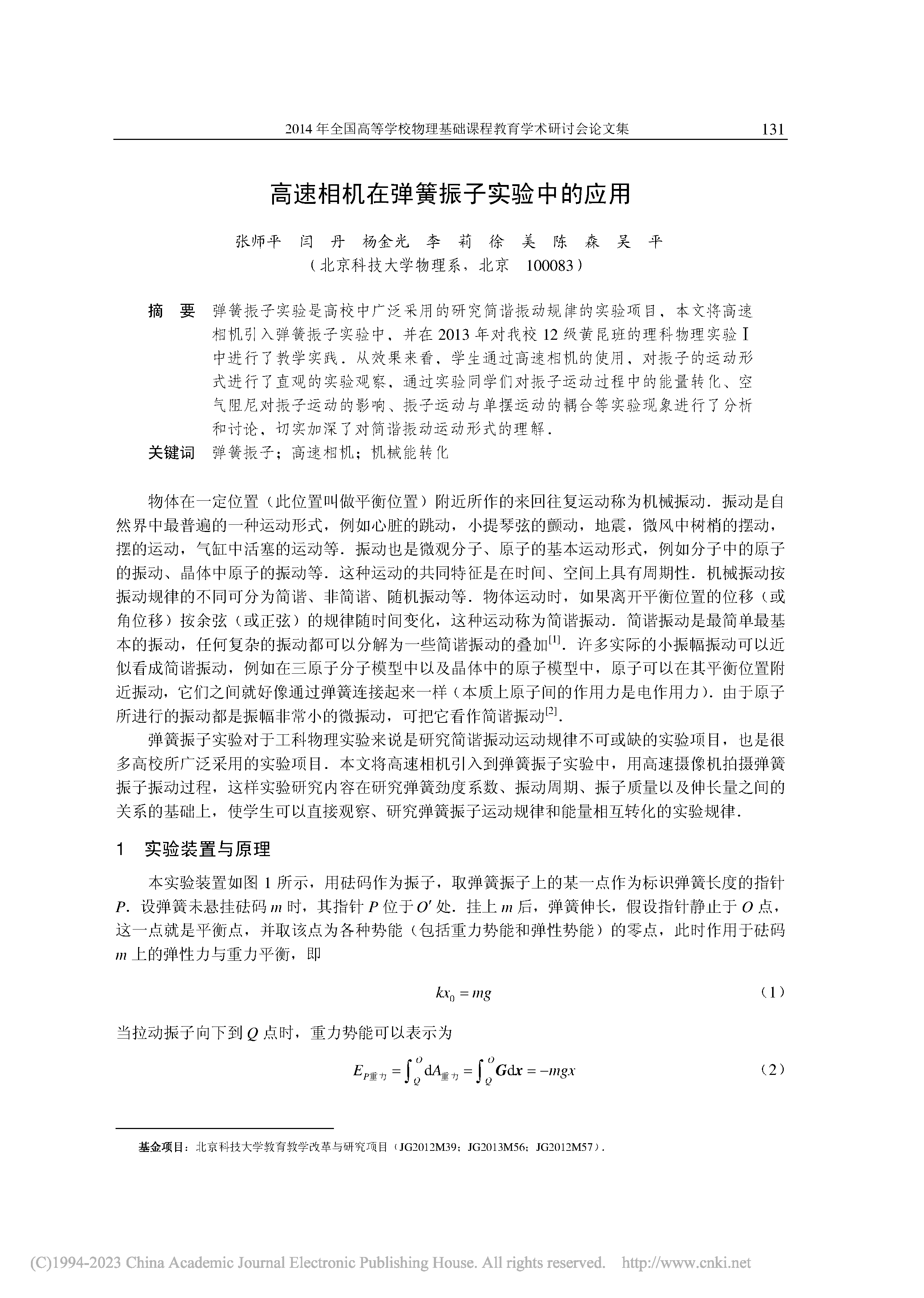 [27] 张师平,闫丹,杨金光,李莉,徐美,陈森,吴平,高速相机在弹簧振子实验中的应用,物理与工程,2014,S1:131-133.