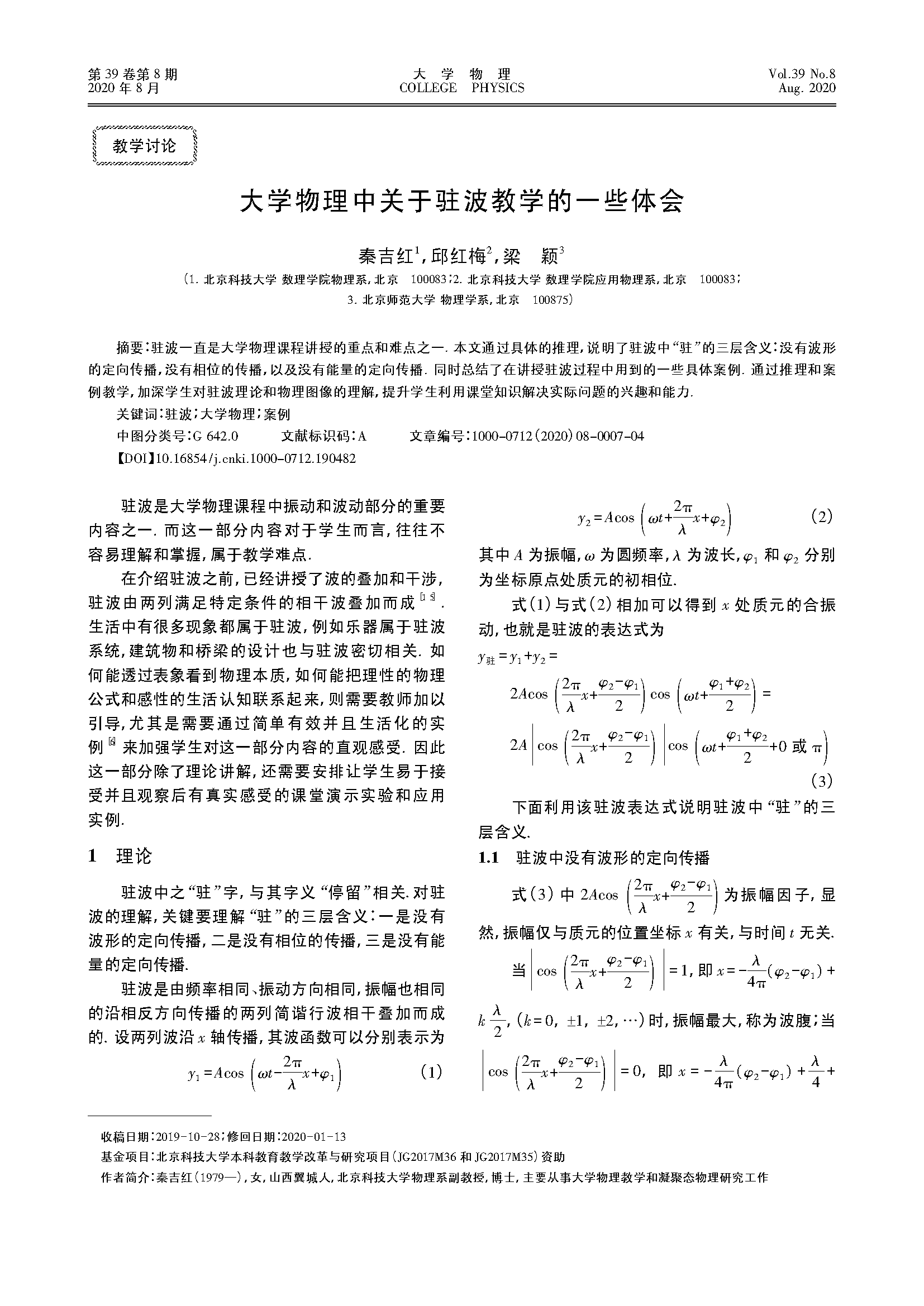 [29] 秦吉红,邱红梅,梁颖,大学物理中关于驻波教学的一些体会,大学物理,2020,08:7-10.