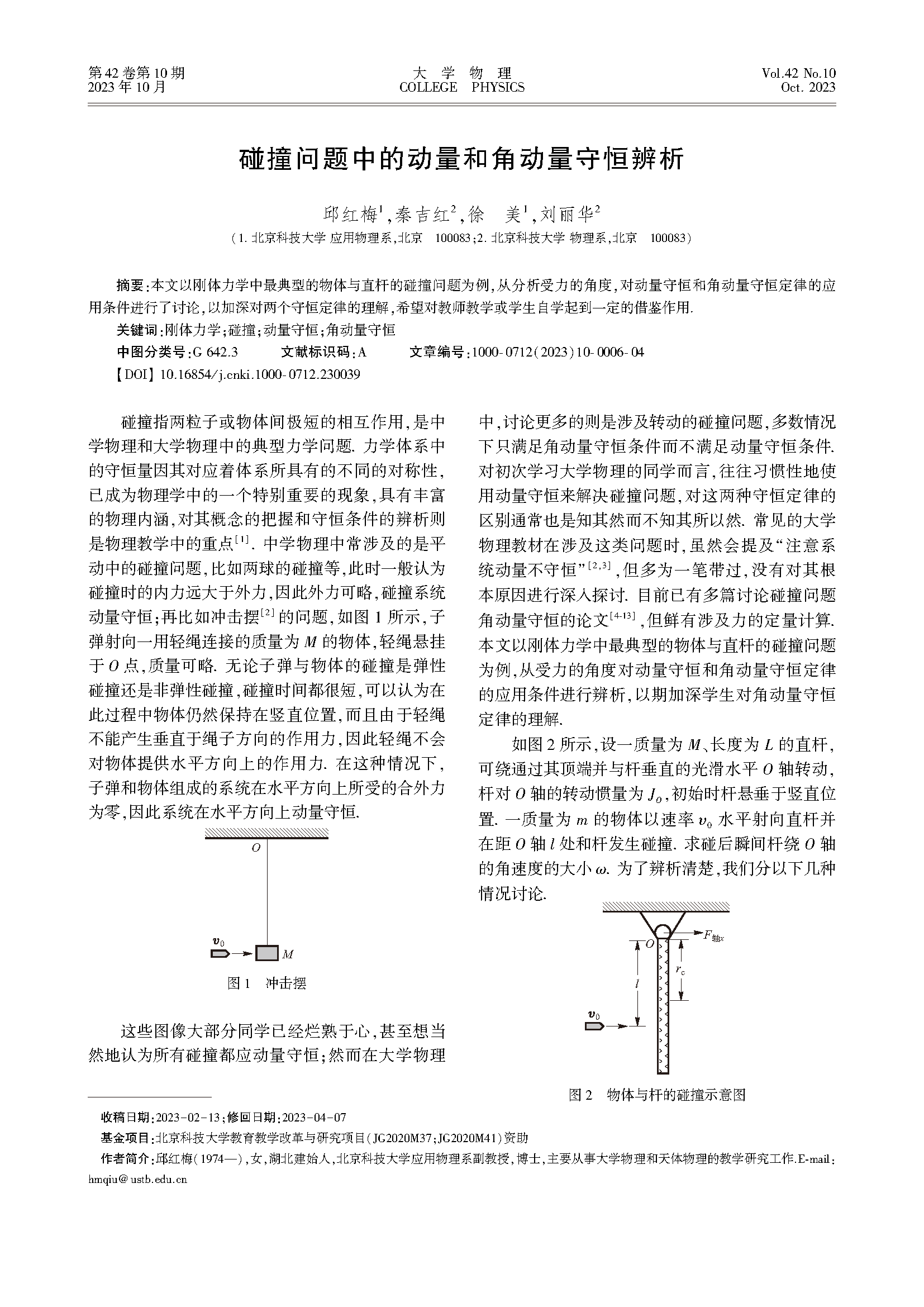 [46] 邱红梅,秦吉红,徐美,刘丽华,碰撞问题中的动量和角动量守恒辨析,大学物理,2023,10:6-9.