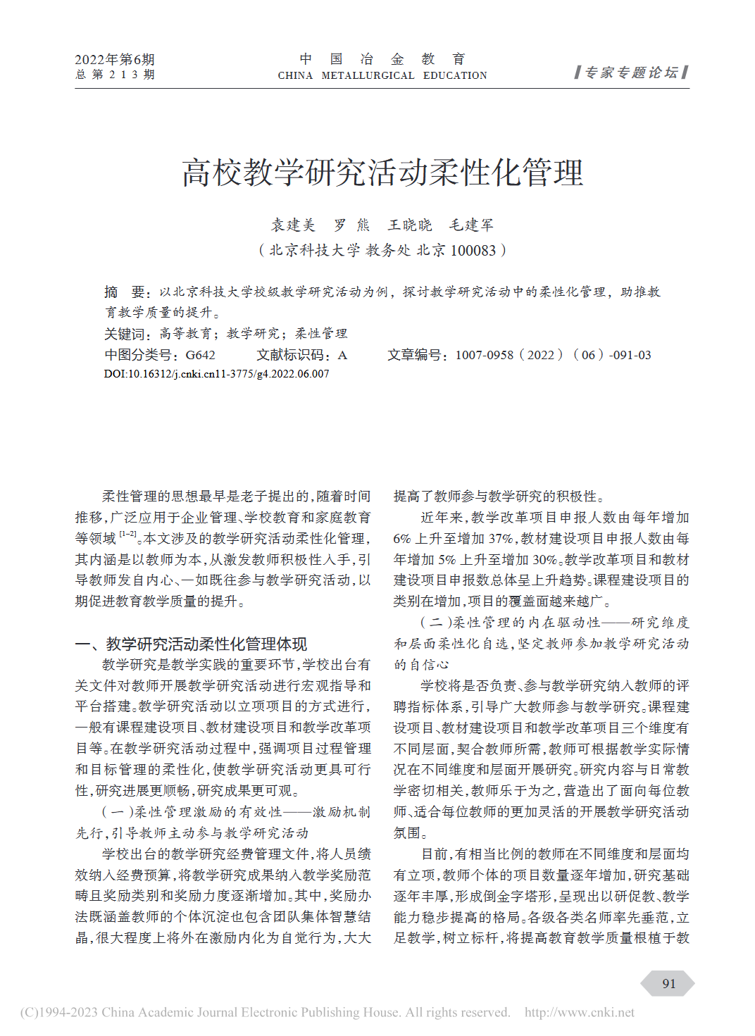 [45] 袁建美,罗熊,王晓晓,毛建军,高校教学研究活动柔性化管理,中国冶金教育,2022,(6):91-93.