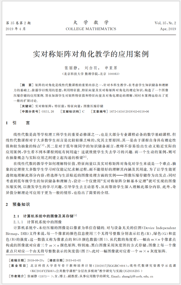[55] 张丽静,刘白羽,申亚男,实对称矩阵对角化教学的应用案例,大学数学,2019,35(2).