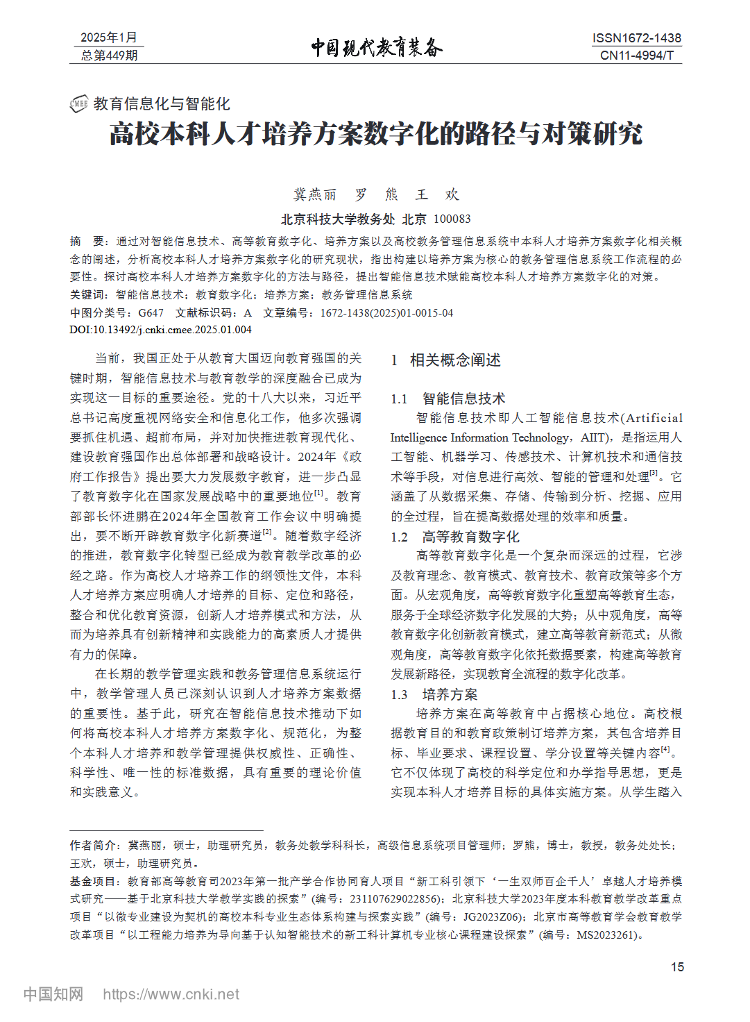 [65] 冀燕丽,罗熊,王欢,高校本科人才培养方案数字化的路径与对策研究,中国现代教育装备,2025,(1):15-18.