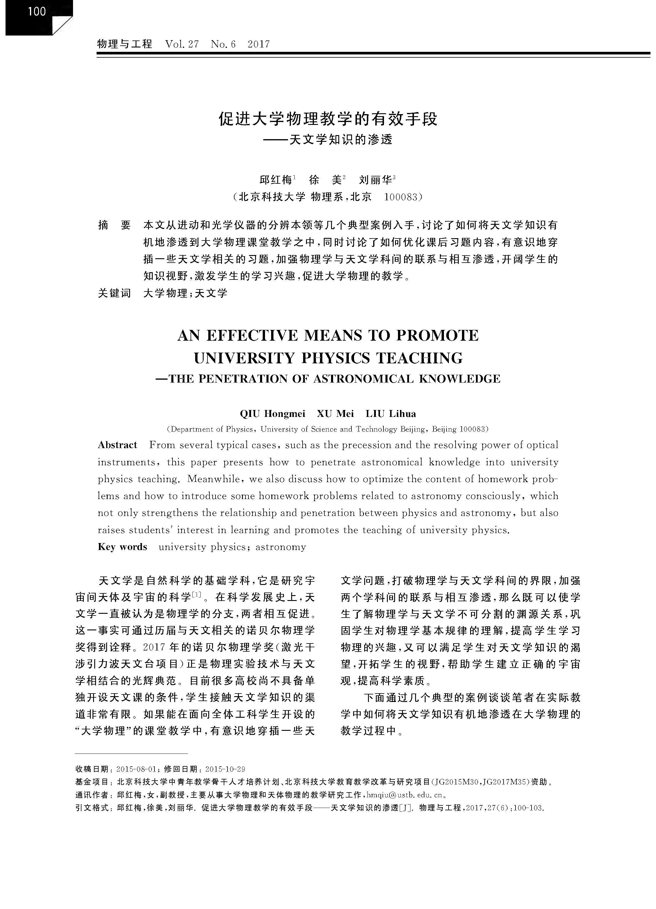 [38] 邱红梅,徐美,刘丽华,促进大学物理教学的有效手段——天文学知识的渗透,物理与工程,2017,06:100-103.
