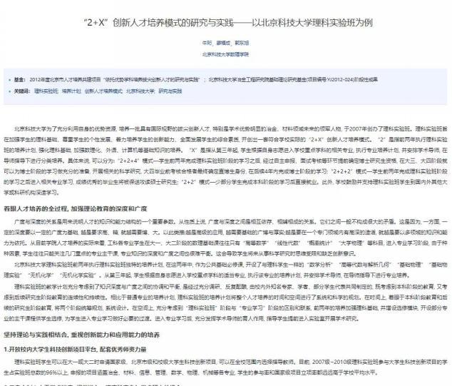 [46] 牛珩,廖福成,郭东旭,“2+X”创新人才培养模式的研究与实践——以北京科技大学理科实验班为例,北京教育:高教版,2014,(7):2.
