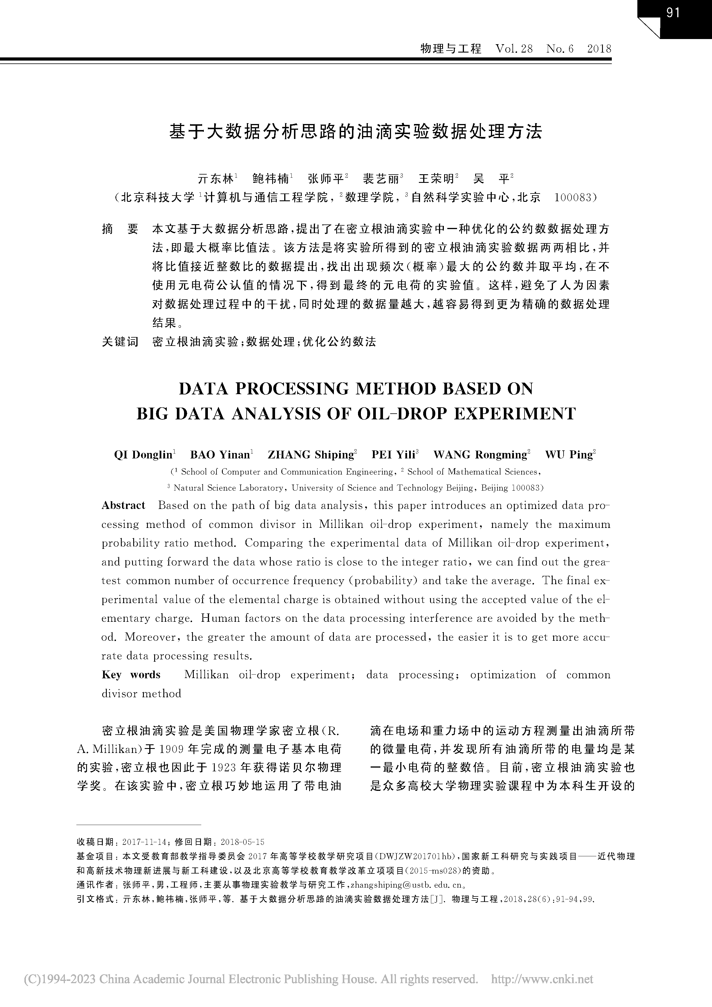 [36] 亓东林,鲍祎楠,张师平,裴艺丽,王荣明,吴平,基于大数据分析思路的油滴实验数据处理方法,物理与工程,2018,28(06):91-94+99.