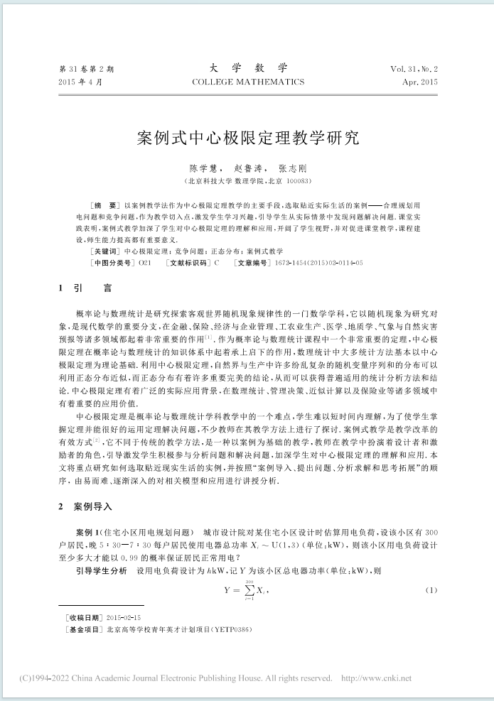 [3] 陈学慧,赵鲁涛,张志刚,案例式中心极限定理教学研究,大学数学,2015,31(2):114-118.