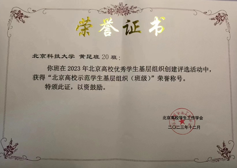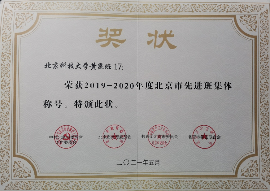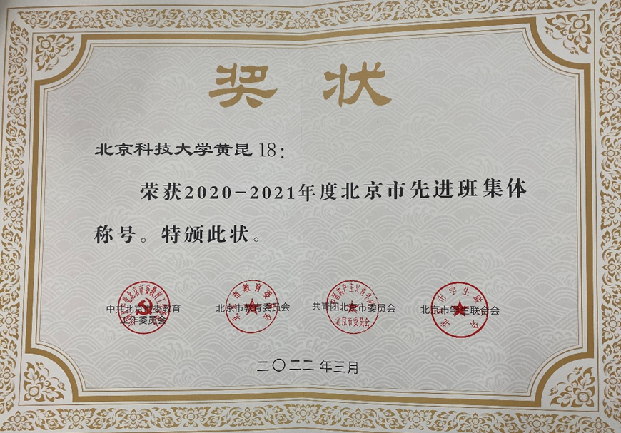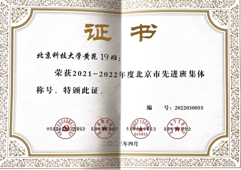 黄昆班集体荣誉证书
