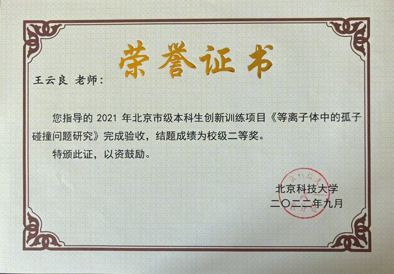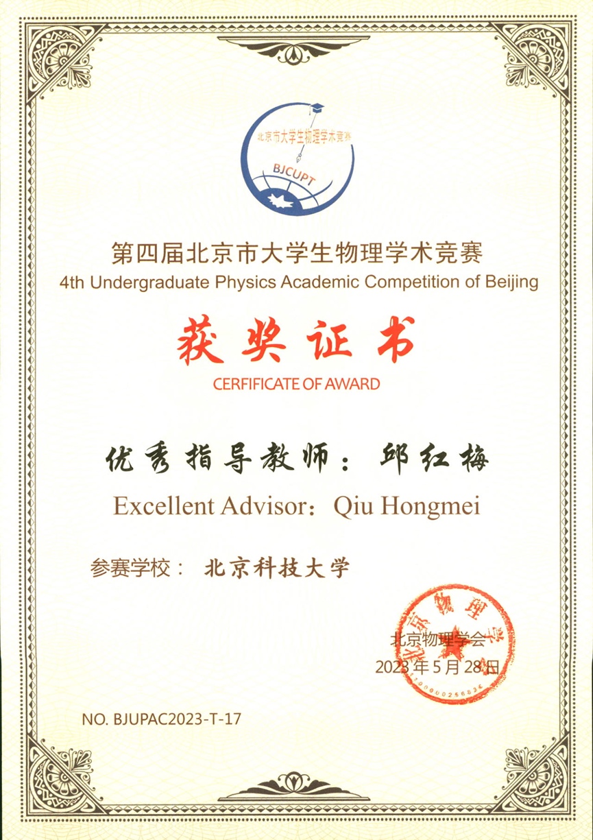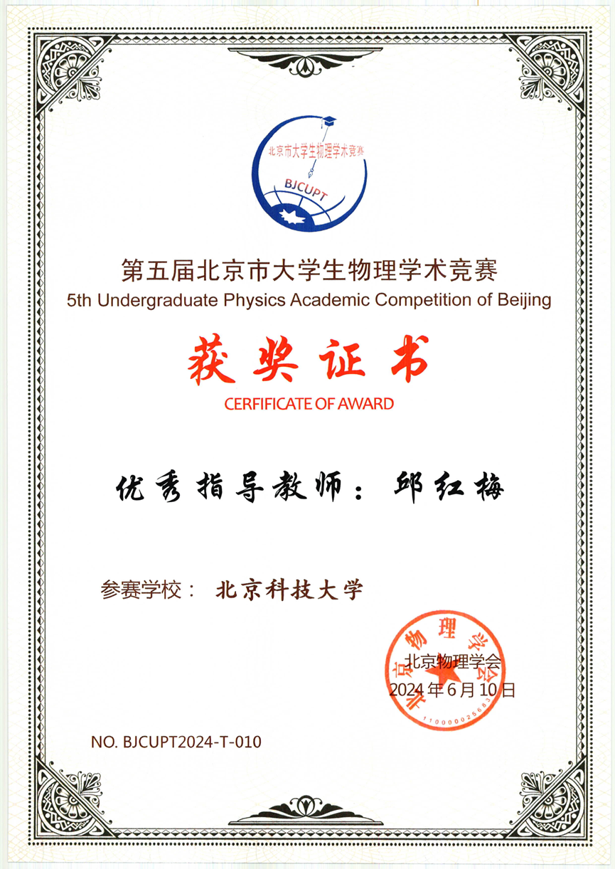 黄昆班北京市级竞赛获奖证书