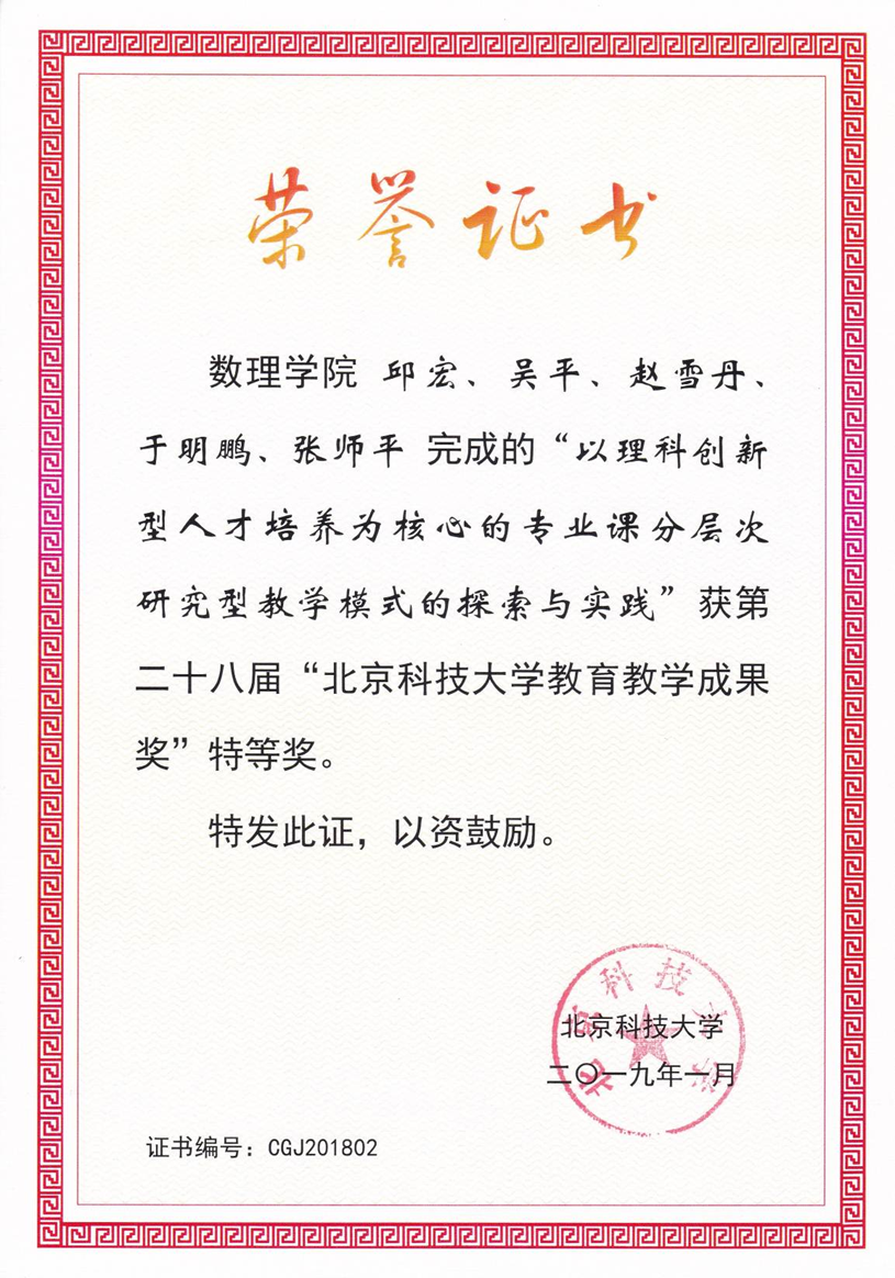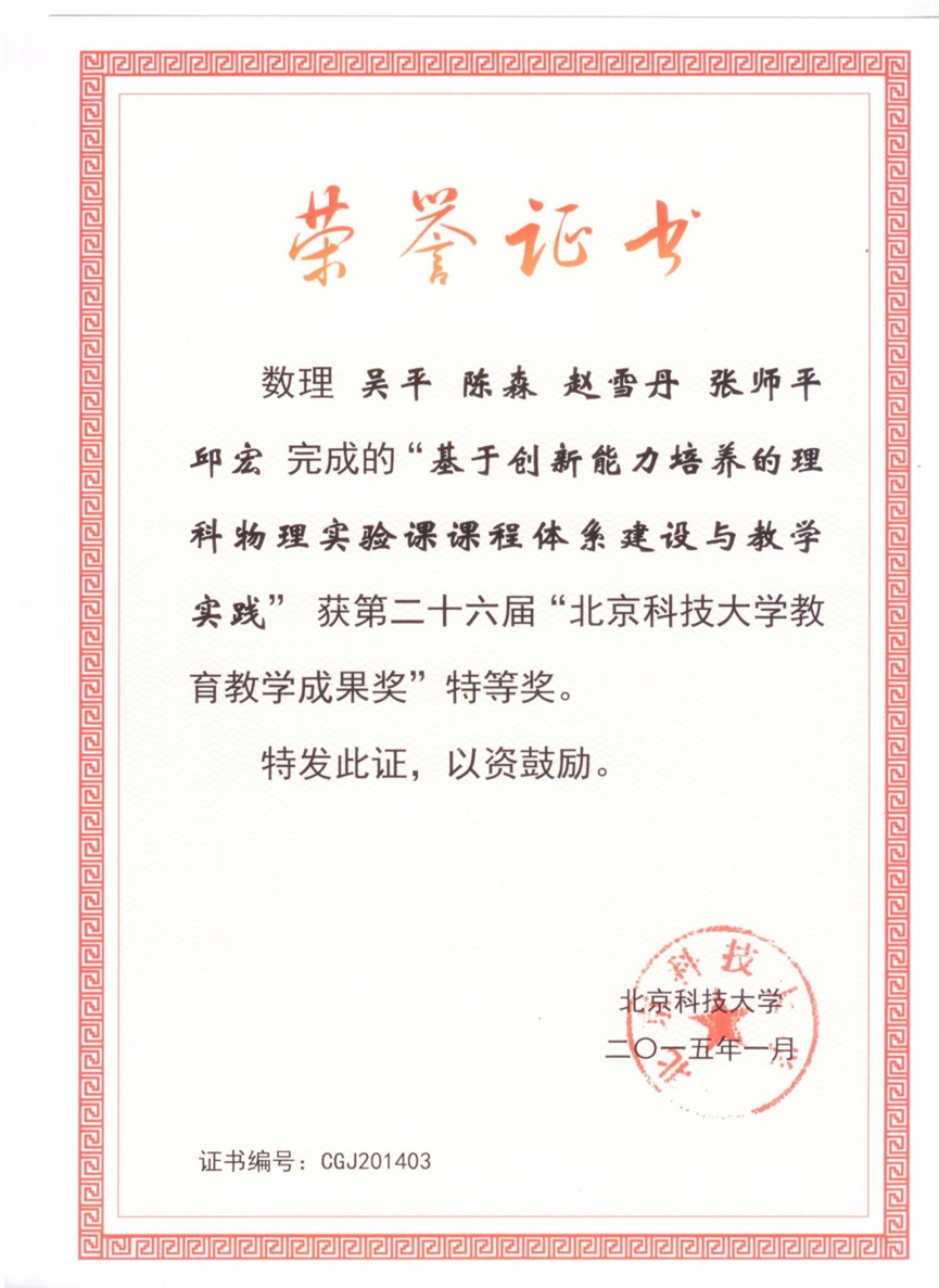 黄昆英才班本科就读期间获奖