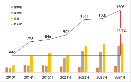 赛创融合机制:重构“基础+交叉+前沿”模块化创新创业课程,将三大赛等赛事标准融入课程目标设计。创新课程建设方面:陆续新设《大学生工程创新》、《程序设计竞赛基础》、《信息学科创新实践》等创新实践课程。创新成果转化:已孵化创业公司11家,获得融资300余万元。科技竞赛成绩显著提升:学生参与科技竞赛获奖人次从2013年的442人次增长至2024年的1606人次,增长263%。