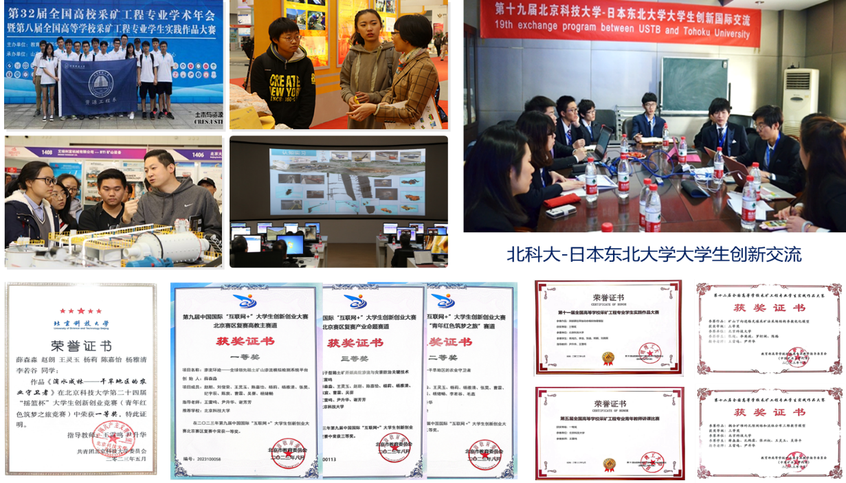 ② 推动产学研用,提出了以竞赛促进学生实践的方法,创新了多层次-进阶式本科生实践创新能力培养新平台,指导采矿工程学生参加“北科大-日本东北大学大学生创新国际交流”、“全国采矿工程大学生实践作品大赛”等创新创业大赛,荣获全国采矿实践作品大赛一等奖、“互联网+”北京市一等奖等教学奖励与成果落地。