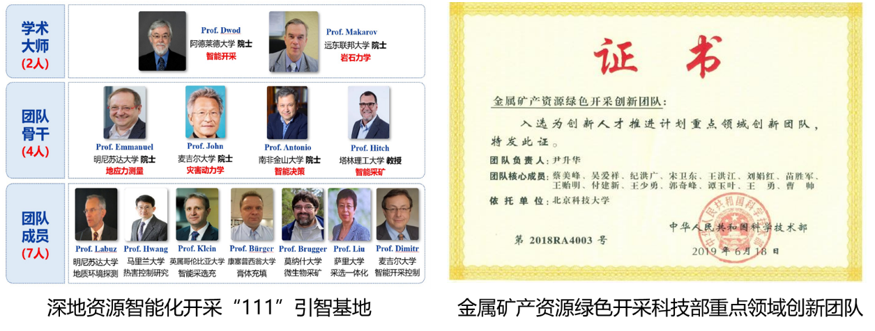 ④ 建设获批了高等学校学科创新(“111”)引智基地-深地资源智能化开采、科技部重点领域创新团队-金属矿产资源绿色开采创新团队等一流平台条件;并且,将“万人领军”、“国家优青”、“青年CJ”、“宝钢优秀教师”等一流科研师资队伍优势引入新工科的教学环节,形成了科教双轴协同驱动平台创新。