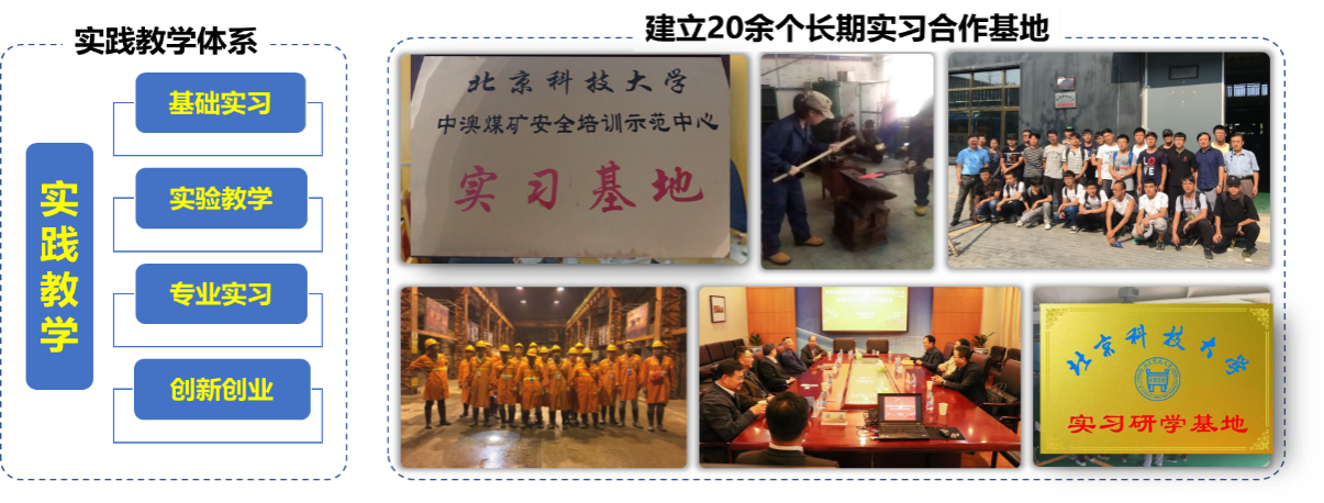 (1)聚焦矿业变革发展与传统人才培养矛盾,开展新工科培育机制更新迭代,提出了“四个创新”,即:培养模式创新、课程体系创新、实践实习创新、育人平台创新在此推动下获批智能采矿工程新本科专业,打造了矿业类3+1+2本硕贯通式培养”等新工科人才培养新模式;获批两个国家级一流本科课程,引入Python基础及应用》、《矿山人工智能基础》等新工科课程;建设海内外共5个矿山实践平台基地;获批了深地资源智能化开采“111”引智基地,并“万人领军”、“国家优青”、“青年CJ”、“宝钢优秀教师”等一流师资队伍引入教学环节。