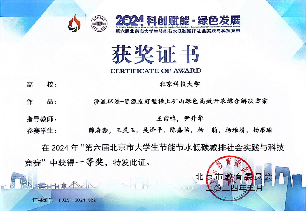 3. 第六届北京市大学生节能节水低碳减排社会实践与科技竞赛,一等奖,2024,北京市教育委员会