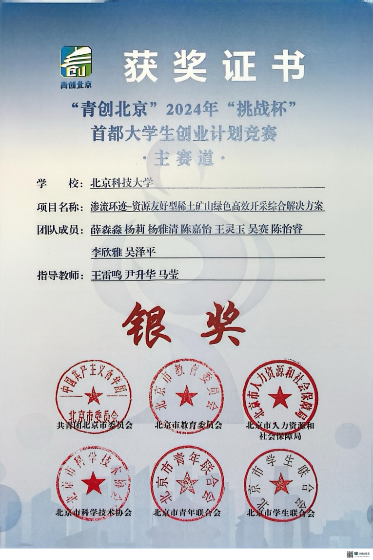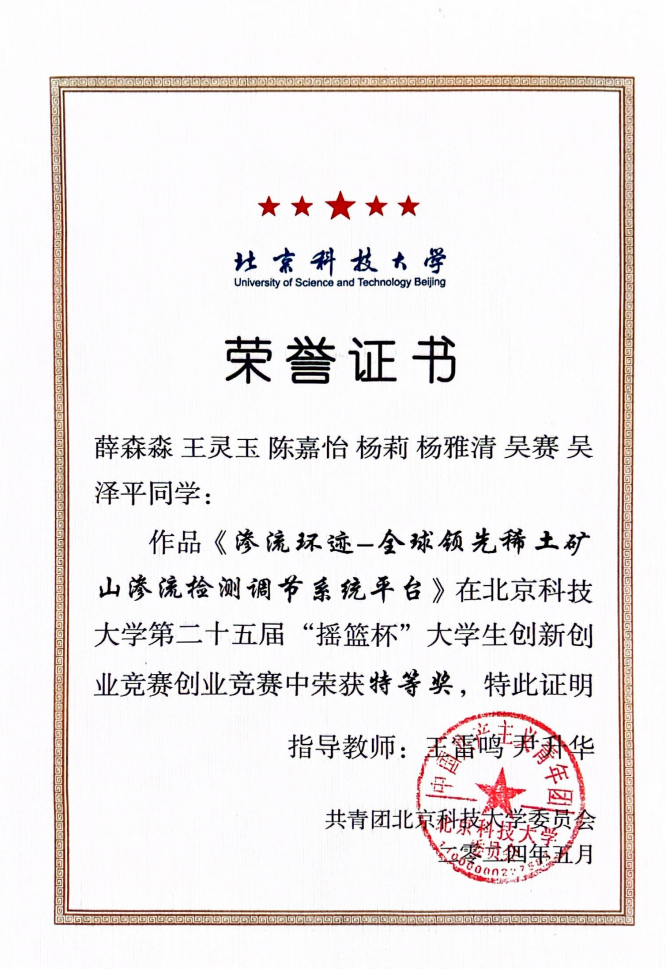 11. “摇篮杯”大学生学术科技作品竞赛(特等奖),2024,北京科技大学