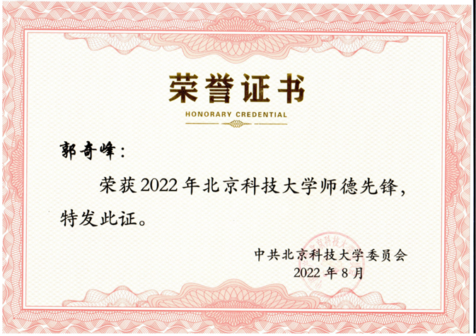 5. 北京科技大学师德先锋,2022,北京科技大学,(郭奇峰)