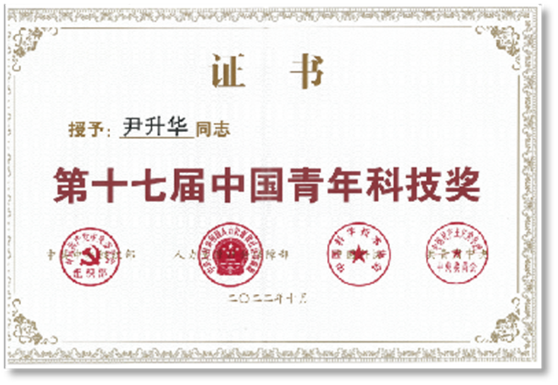 1.中国青年科技奖,2022,中组部、人社部、中国科协、共青团中央(尹升华)