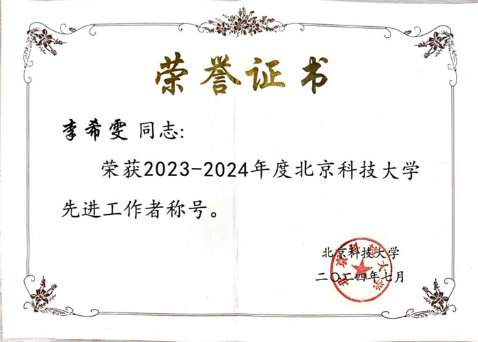 7. 北京科技大学先进工作者,2023,北京科技大学,(李希雯)