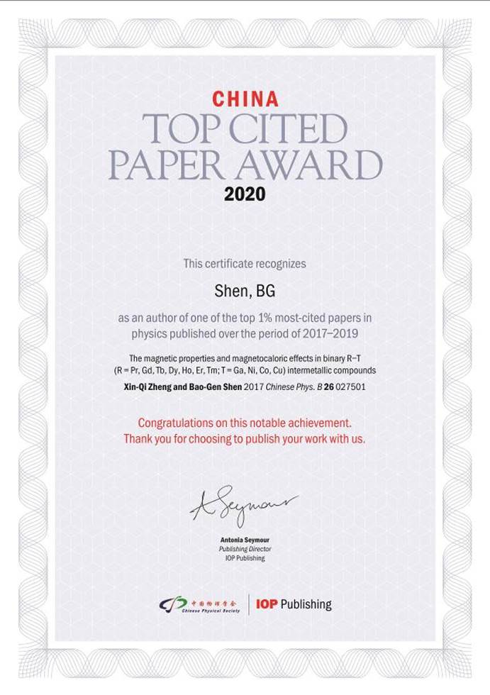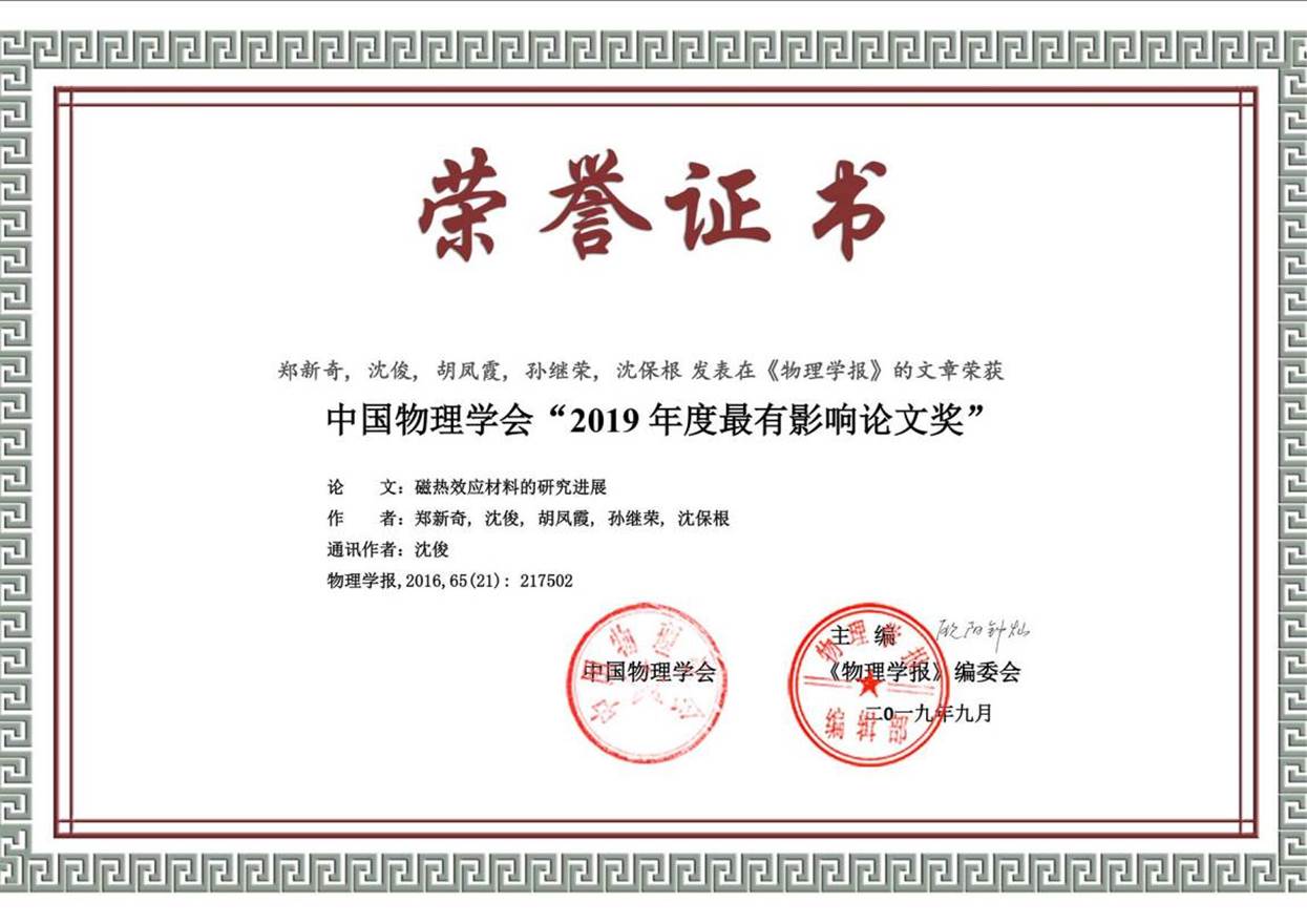 7 中国物理学会“2019年度最有影响论文奖”