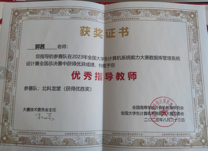 b) 2023年全国大学生计算机系统能力大赛数据库管理系统设计赛,优秀指导教师