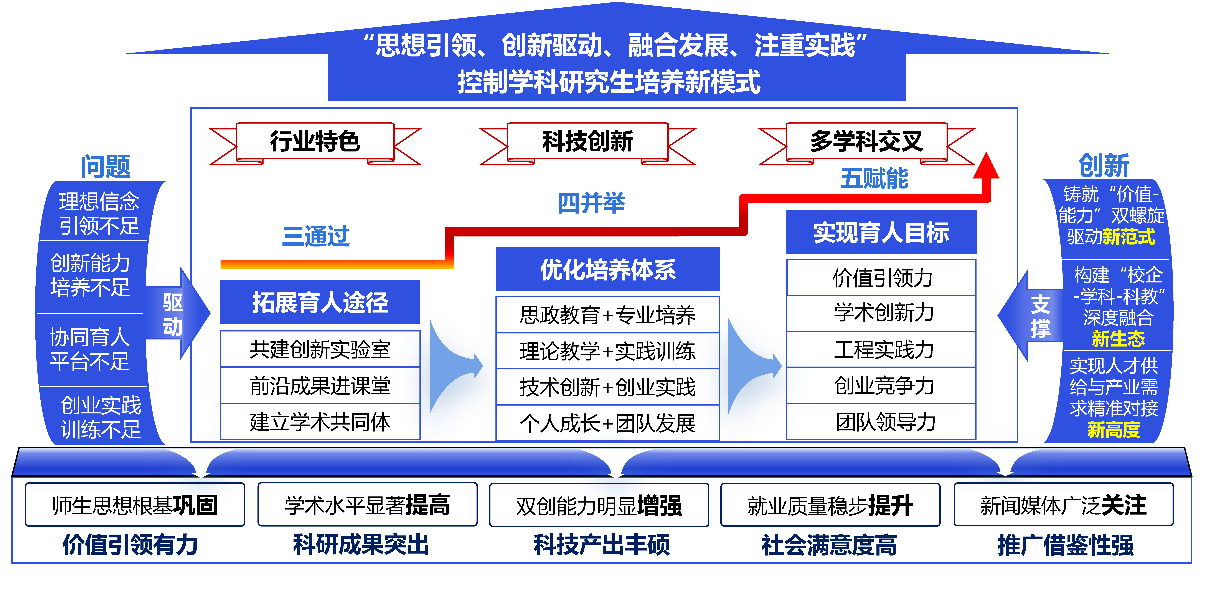 为服务新一轮科技革命和产业变革对控制学科高层次人才的紧迫需求,本成果依托北京科技大学的钢铁冶金行业背景与学科优势,以“思想引领、创新驱动、融合发展、注重实践”为核心理念,推进研究生培养模式改革,将行业特色、科技创新与多学科交叉深度融入育人全过程,促进研究生培养从知识传授向创新能力与产业服务能力提升转变,助力冶金行业高质量发展。