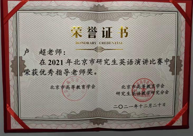 8. 2021.12 北京市研究生英语演讲比赛优秀指导老师 北京市高等教育学会
