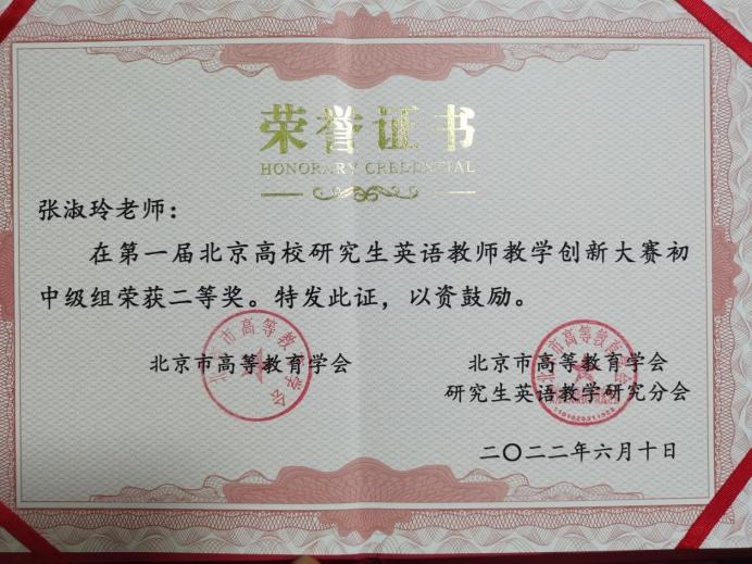 5. 2022.06第一届北京高校研究生英语教师教学创新大赛初中级组二等奖 北京市高等教育学会