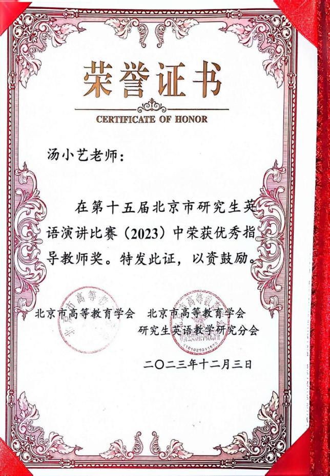 10. 2023.12 北京市研究生英语演讲比赛优秀指导教师 北京市高等教育学会