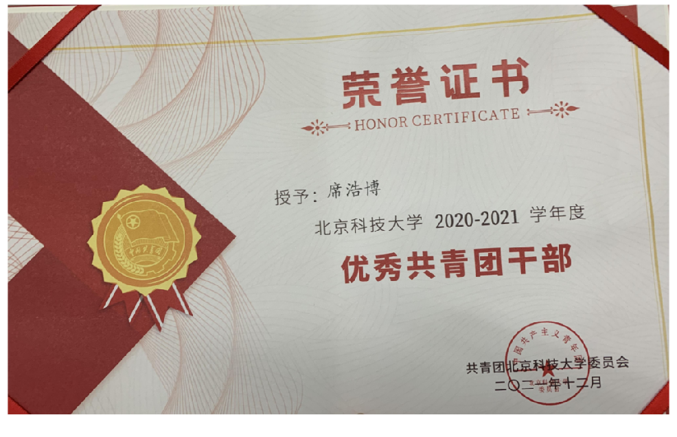 12.2020-2021学年度优秀共青团干部,共青团北京科技大学委员会,2021年12月