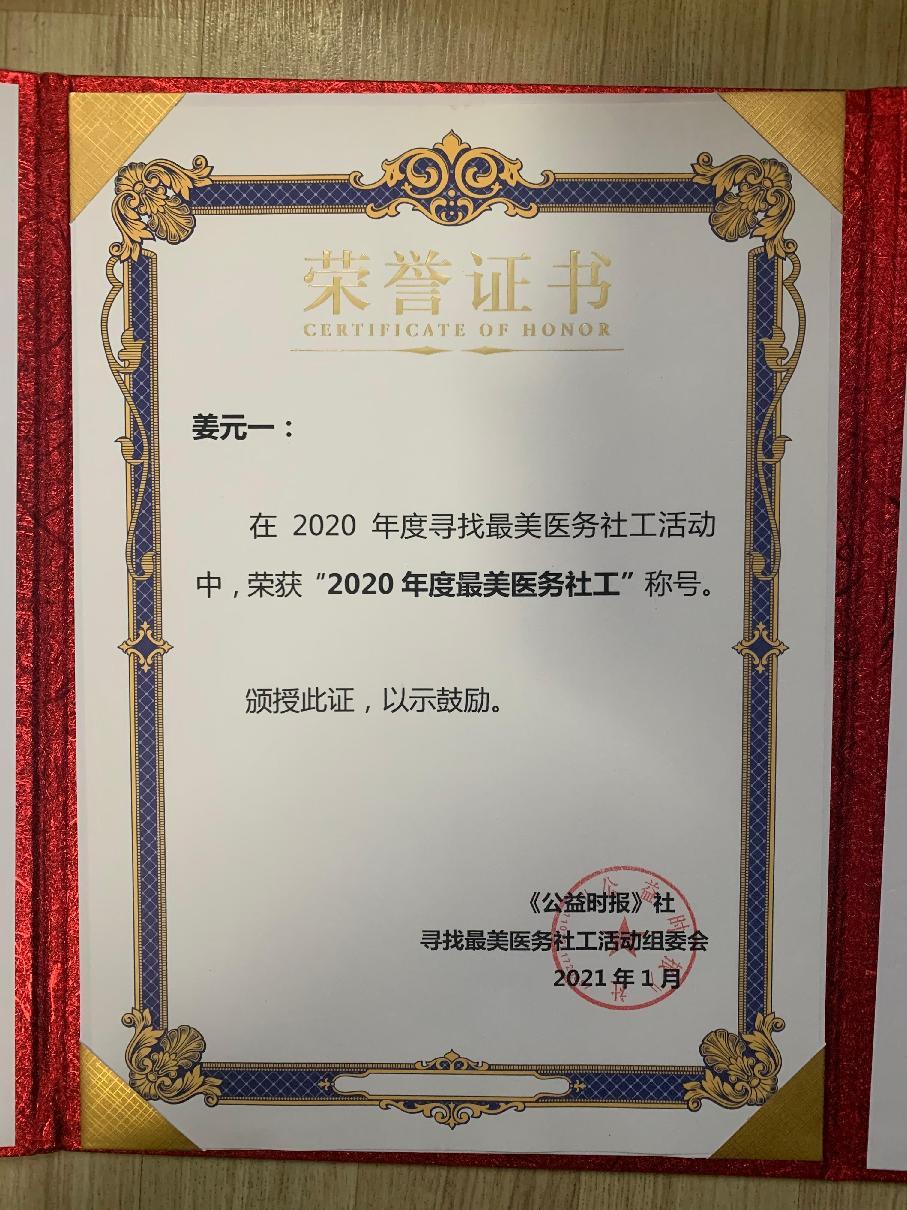 15.毕业研究生获奖:2020年度最美医务社工,《公益时报》社,2021年1月
