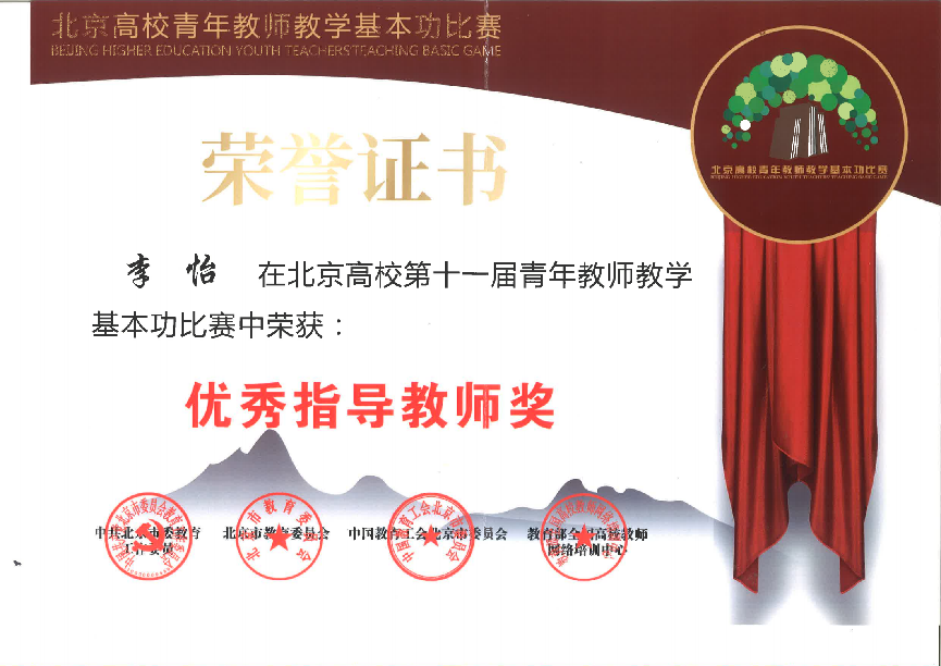3.北京高校第十一届青年教师教学基本功比赛优秀指导教师奖,2019年11月,李怡