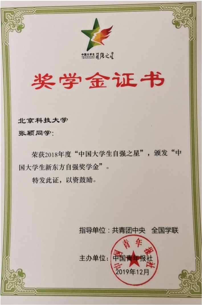 9.2018年度中国大学生自强之星,中国青年报社,2019年12月