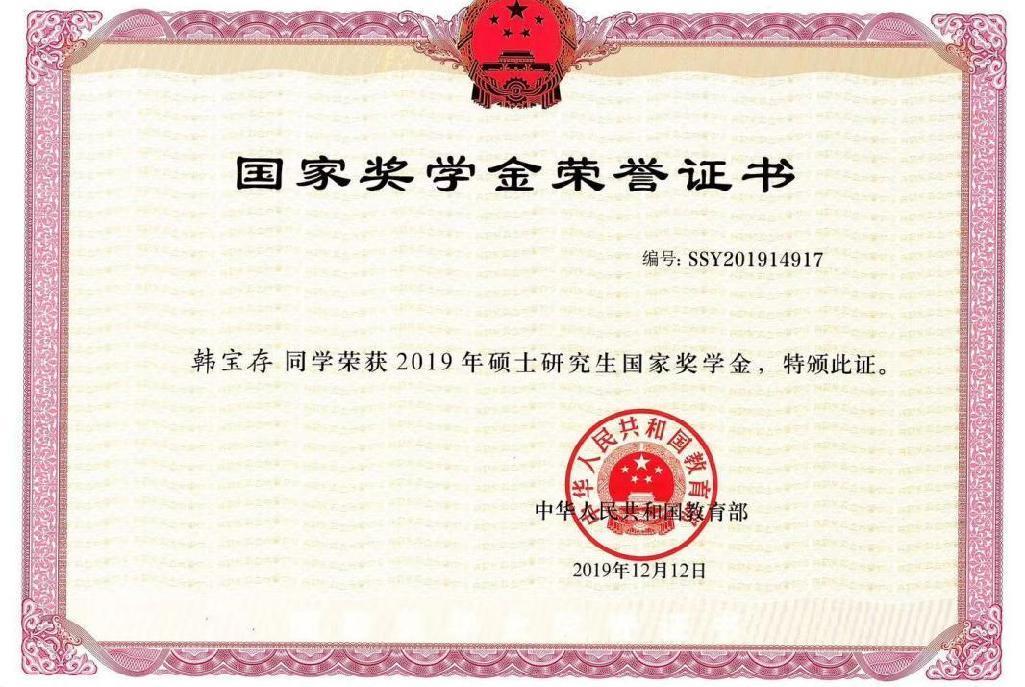 2. 2019年硕士研究生国家奖学金,中华人民共和国教育部,2019年12月