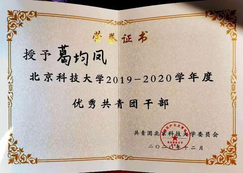 13.2019-2020学年度优秀共青团干部,共青团北京科技大学委员会,2020年12月