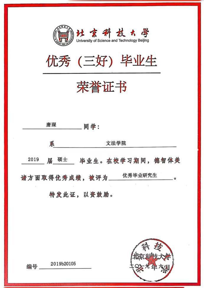 8.2019届北京科技大学优秀毕业研究生,北京科技大学,2019年6月