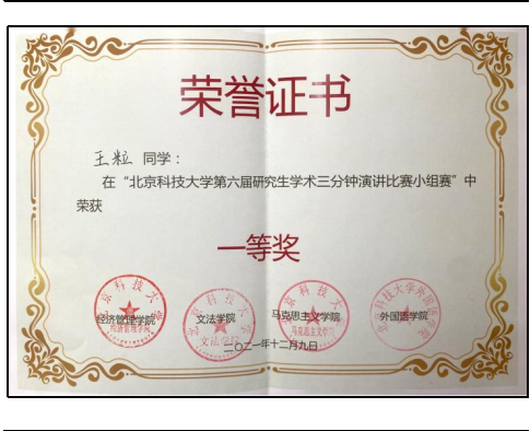 11.第六届研究生学术三分钟演讲比赛一等奖,北京科技大学,2021年12月