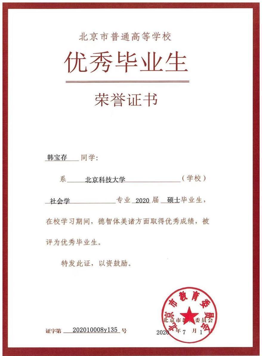 6..2020届北京市优秀毕业生,北京市教育委员会,2020年7月
