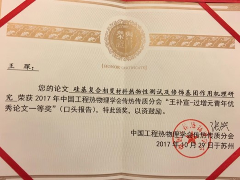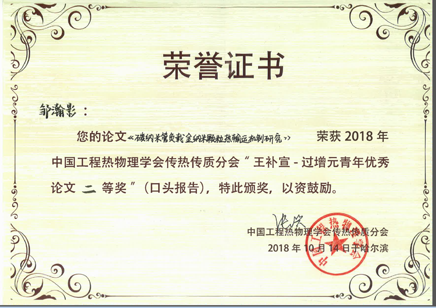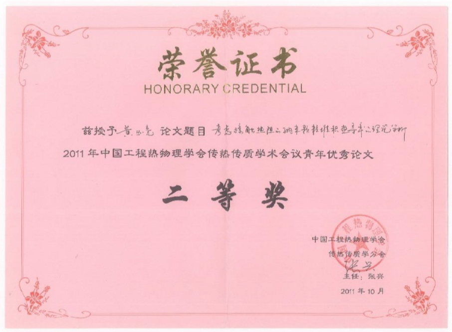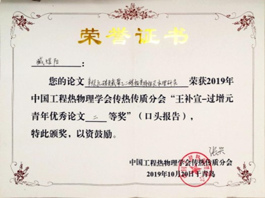 中国工程热物理学会传热传质分会“王补宣青年论文奖” |