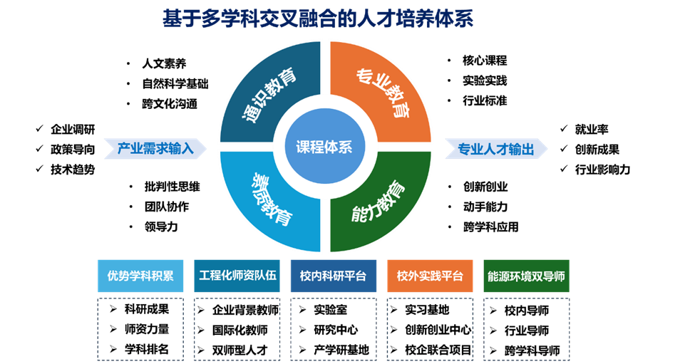 近年来,教育部积极推进新工科建设,先后形成“复旦共识”“天大行动”“北京指南”,旨在构建引领全球工程教育的中国模式。新工科坚持以立德树人为根本,以应对变化、塑造未来为理念,通过继承与创新、交叉与融合、协调与共享等途径,培养多元化、创新型卓越工程人才,强调专业知识、职业能力与专业素养并重。然而,当前能源环境学科在推进交叉融合培养过程中,仍面临若干深层次问题,亟需在实践层面加以突破。