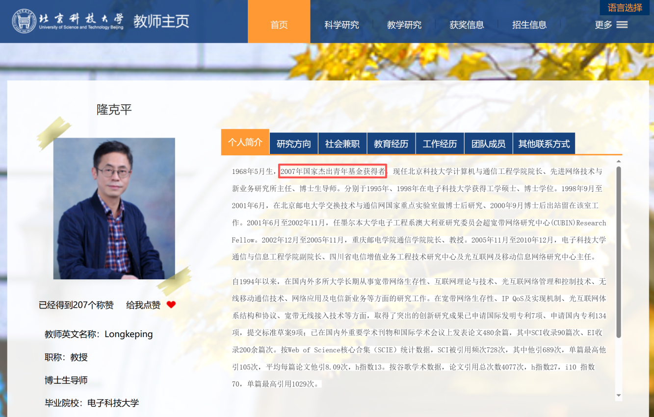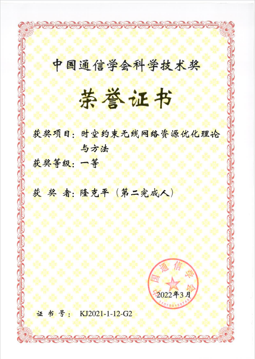 中国通信学会青年科技奖