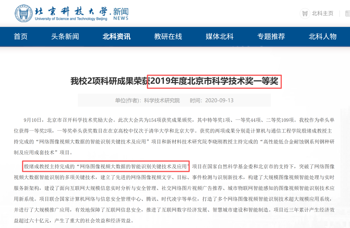北京市科学技术奖一等奖