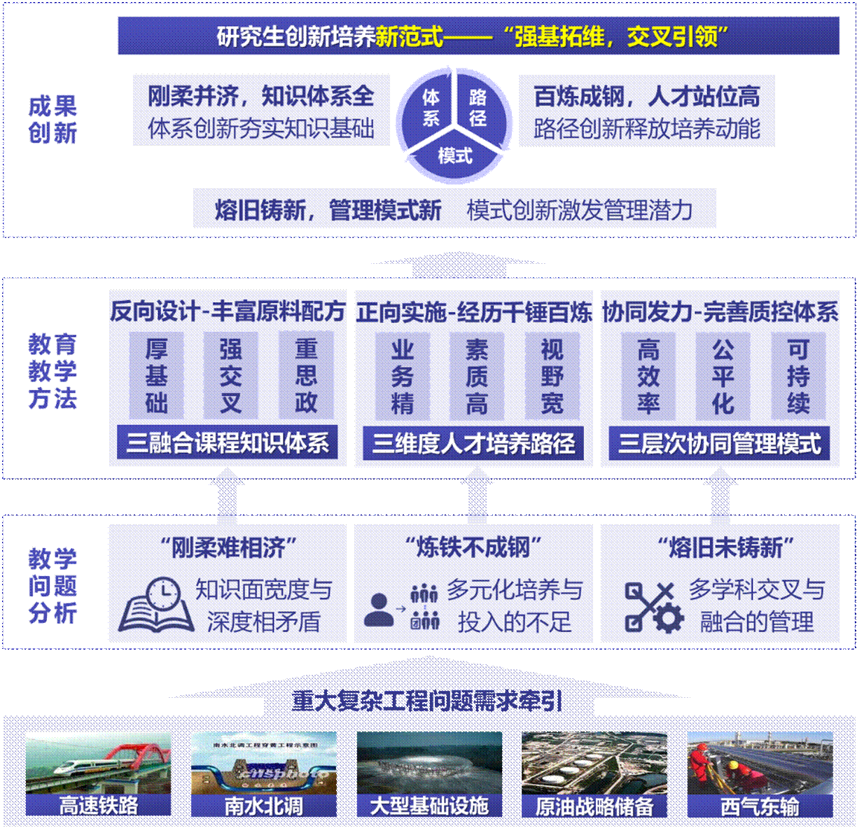 习近平总书记在2024年全国教育大会中提出加快建设教育强国要求“以国家战略需求为牵引,加强基础学科、新兴学科、交叉学科建设及拔尖人才培养”。作为首个由教育部部属高校牵头建设的国家大科学设施---“重大工程材料服役安全研究评价设施”暨“国家材料服役安全科学中心”(简称“中心”),针对“尺度域、环境域、时间域、安全评价”四大关键科学技术,开展了大量以往我国受制于试验能力不足的大型应用基础科学试验。在服务国家重大工程需求过程中,形成了涵盖材料、安全、机械、控制、计算机、冶金、土木、力学、物理等9个一级学科的“强基拓维,交叉引领”高水平人才培养的新范式。